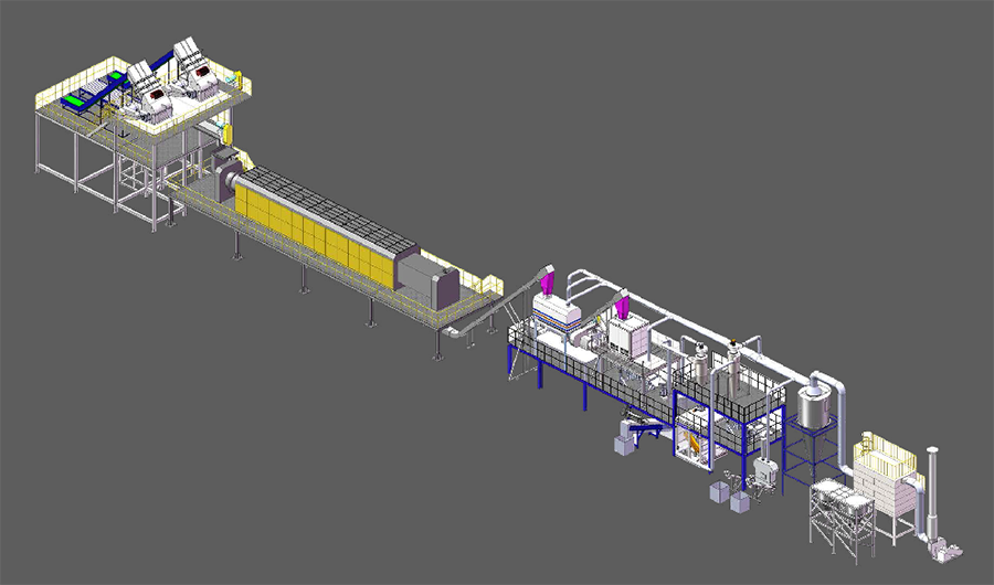 1.采用多级破碎机组破碎,粗破碎采用我司独特设计的专用鲤电破碎机,针对带电电池破碎可采用气体保护设计,避免发生火警,降低风险;