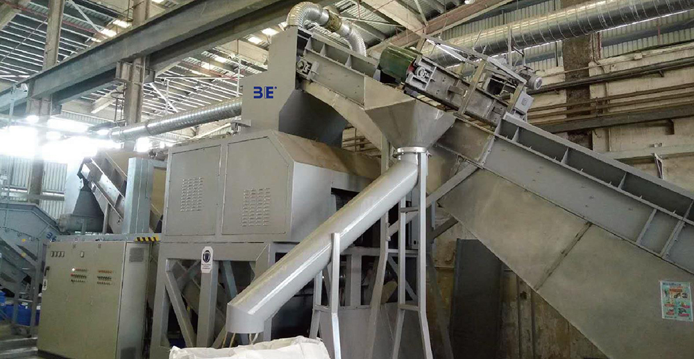 涡流散料机物料送入此机中进一步摩擦、搓揉,铜与铜表 层的塑胶分离彻底,并细化塑料及使细铜丝成粒,以利于后序的 分选。 |